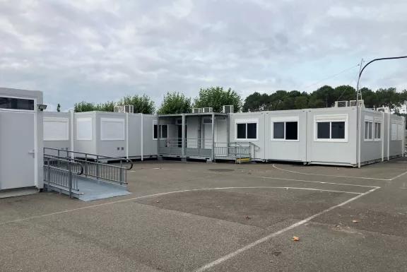 À Lormont, en Gironde, la municipalité a choisi la construction modulaire Algeco pour dédoubler les classes de CE1 de trois écoles inscrites dans le dispositif national « réseaux d'éducation prioritaire » (REP / REP+).