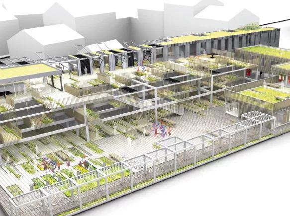 Proposant une palette d’éléments modulaires et permutables, elle offre des solutions industrielles à un problème global. Les éléments de la gamme AlgEco+ répondent à la demande croissante de solutions alternatives en matière d’énergie et d’environnement, une solution durable par son adaptabilité et son évolutivité. Allant du module solaire au potager, ce sont les bases d’une intégration symbiotique qu’elle développe ici. Les outils proposés sont basés sur une trame modulaire de remplissage de la structure. Permettant ainsi la complète permutabilité des éléments suivant la demande ou les besoins.